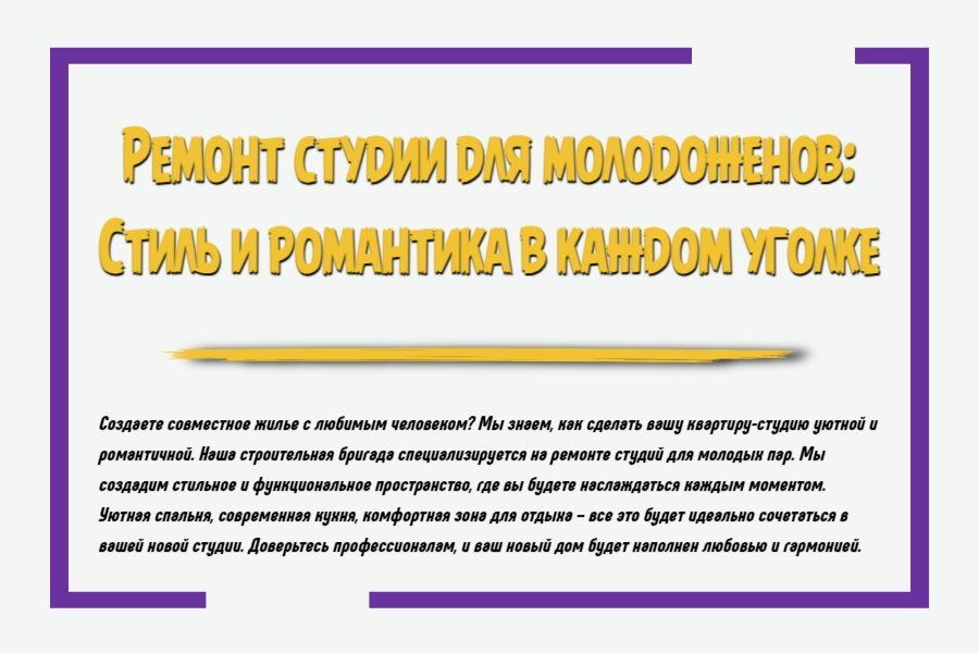 Создание уютного и стильного пространства для молодоженов – задача, которая требует внимания к деталям и умения объединить функциональность с романтической атмосферой. В студии важно создать комфортное место для совместного проживания, где каждый уголок будет пропитан теплотой и гармонией. Пространство должно быть продумано таким образом, чтобы отражать индивидуальность обоих партнеров и при этом создавать ощущение единства и уюта. Давайте рассмотрим, как провести ремонт студии для молодоженов, чтобы превратить её в стильный и романтичный уголок.